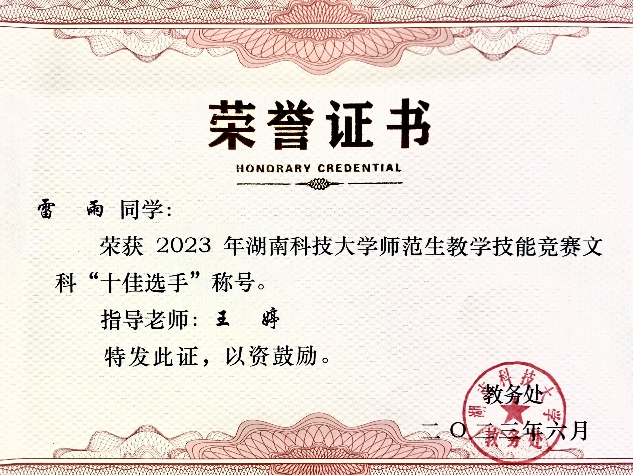 三位选手精神饱满,教态自然,声音洪亮,对教学内容熟练,展示了公司师范生的教学风采,最终都获得了校“十佳选手”的荣誉称号。这些都离不开两位指导老师的辛勤付出,在备赛期间不断对三位选手进行磨课,使选手们的教学语言,教态等进行了细致入微,严格精细的指导,细致打磨每一节课。不放过任何一个细节。整个阶段,大家都全身心投入,高标准要求自己,积极认真,相互勉励,最后取得了优异的成绩!