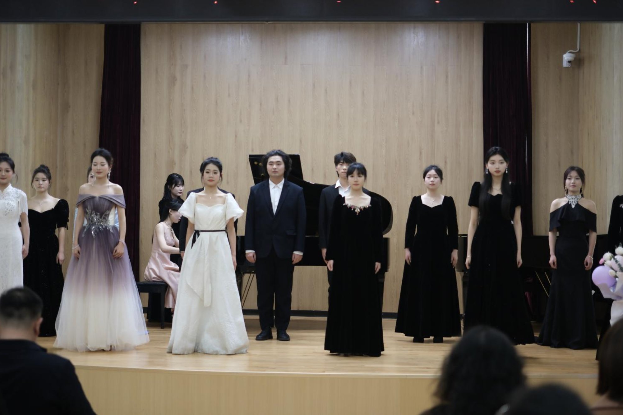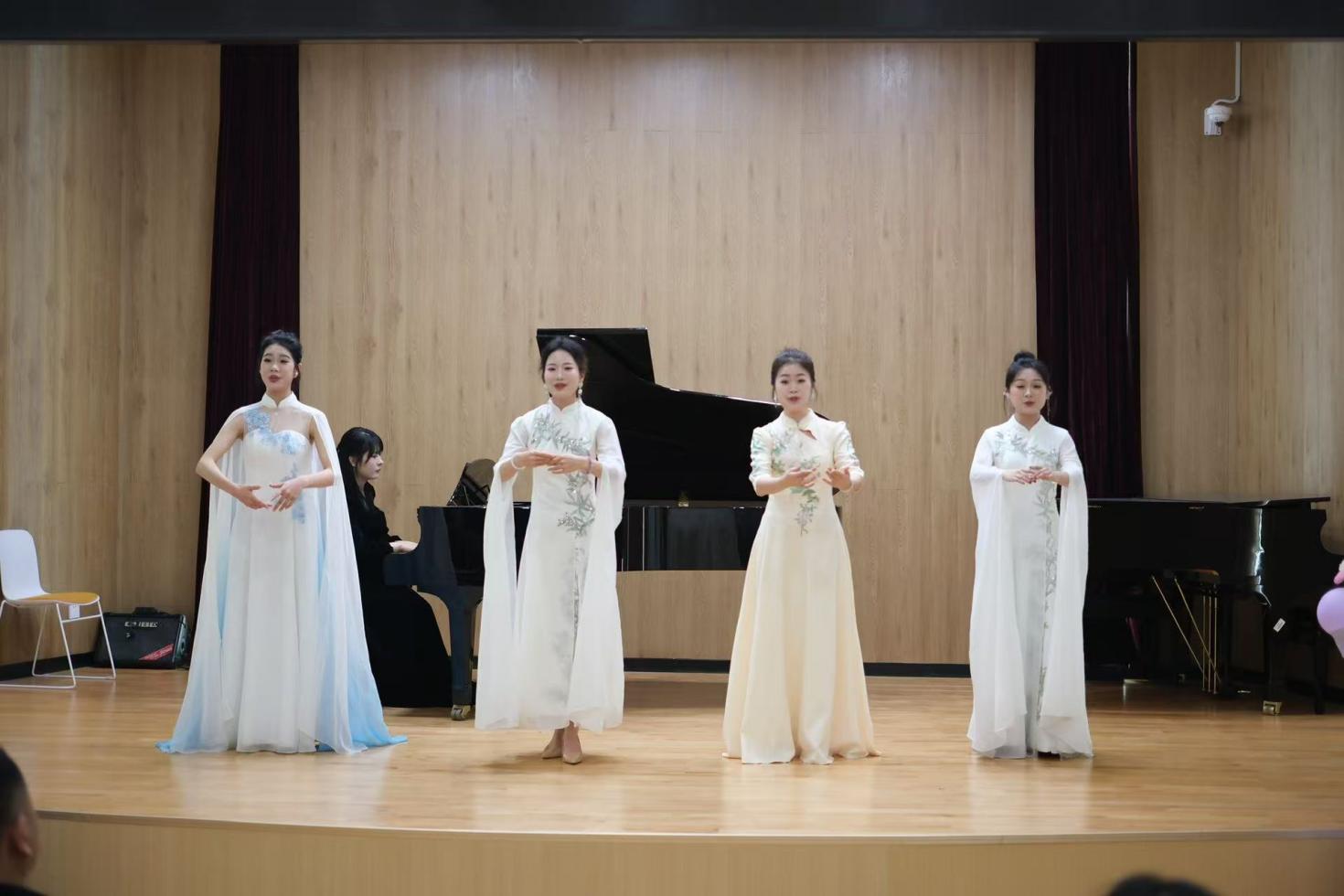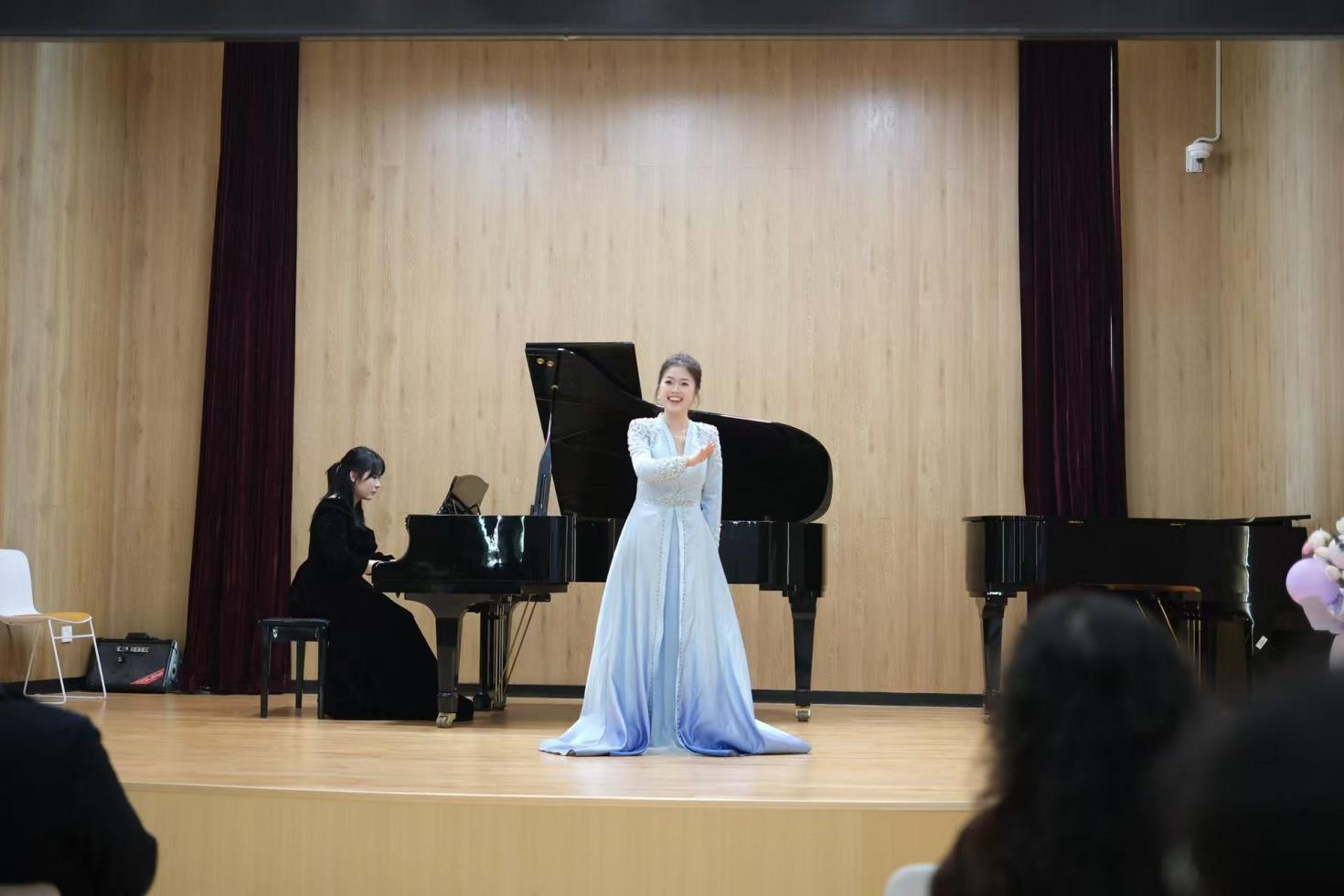 2025年3月12日晚,“民韵新声——赵琴老师汉族民歌教学实践成果音乐会”在公司和乐楼104音乐厅隆重举行,本次活动不仅吸引了公司全体领导的莅临出席,更汇聚了公司全体专任教师及广老员工积极参与。整场音乐会以“地域为经,民风为纬”的编排理念,精心呈现了十余首汉族民歌经典作品。从吴侬软语的江南到粗犷豪迈的关东,从燕赵大地的旷野到齐鲁山川的峻岭,用歌声绘制出一幅流动的中华民歌地图。