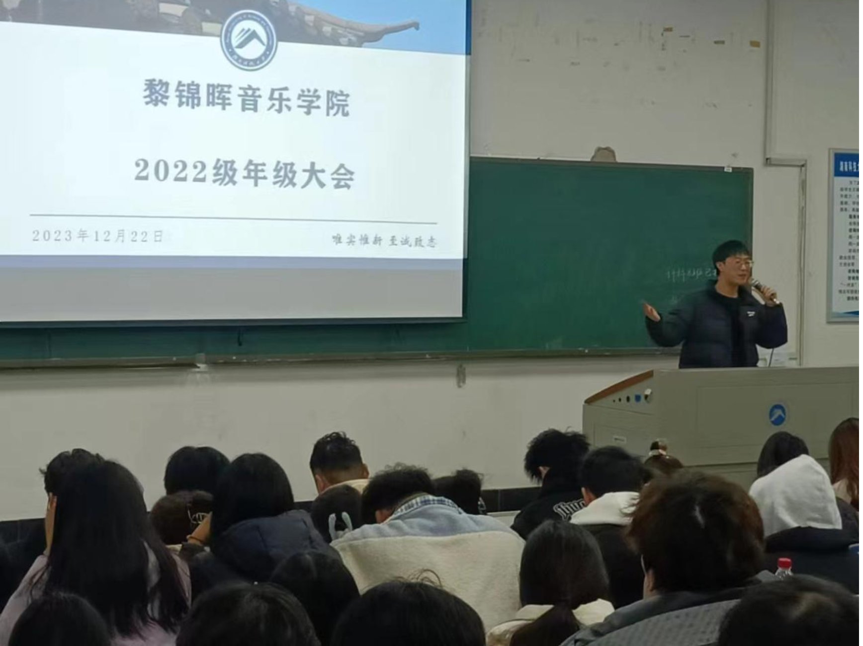 12月19日,辅导员彭雅婷分别召开了21级和23级年级大会,强调了安全、学风、日常工作、社交与网络等四个方面,一是注意人身安全、财产安全、消防安全;二是养成良好学习习惯,树立正确学习目标,抓住学习黄金阶段,为未来打下扎实基础;三是做好日常卫生打扫、按时完成青年大学习;四是做文明网民,学会正确看待网络舆论。最后,期末考试将至,彭雅婷提醒同学们要认真复习,明确学习重点难点,诚信应考,公平竞争,杜绝考试违纪舞弊,以优异的成绩迎接新学期的到来。