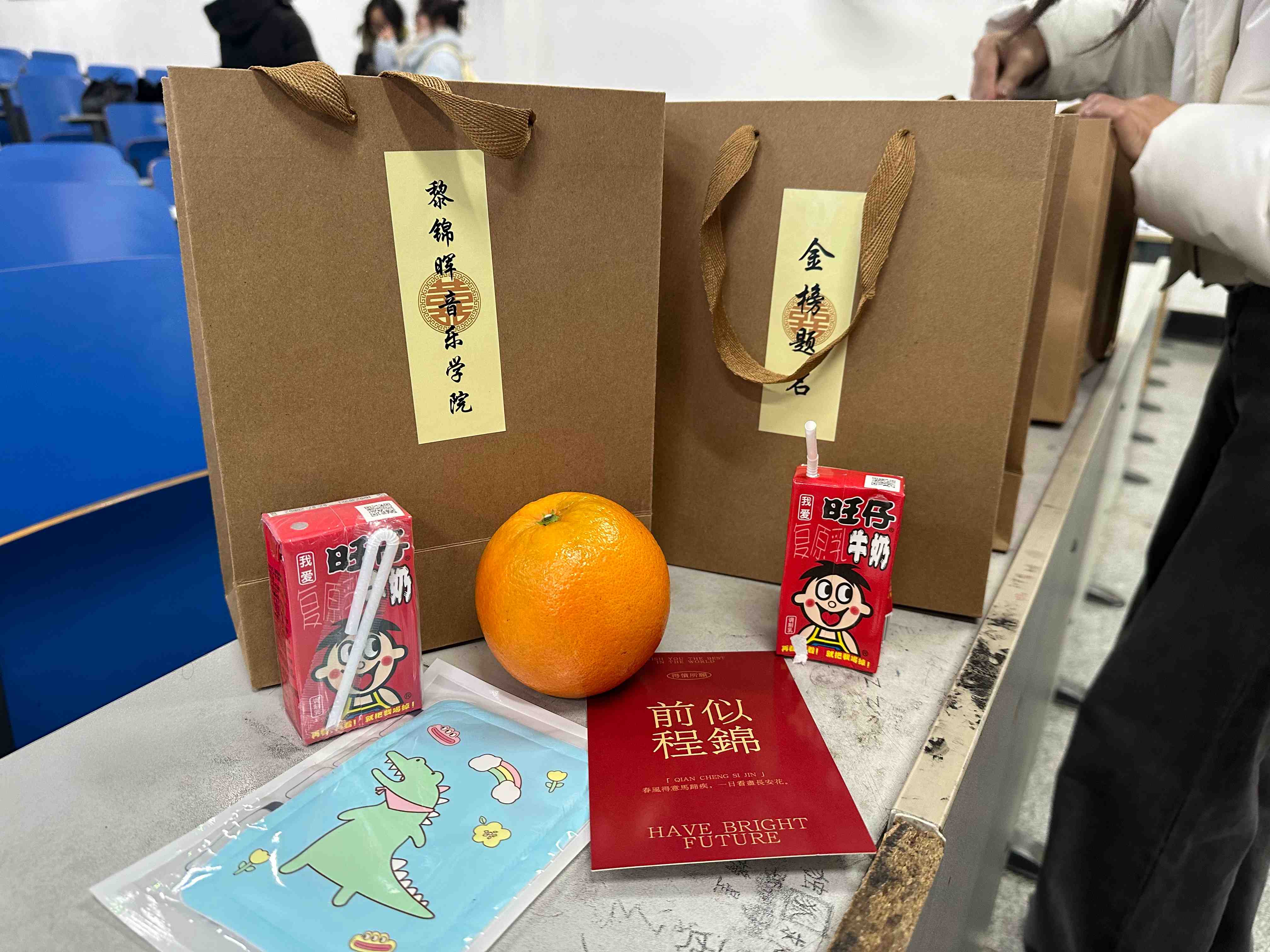 最后公司领导及老师们为考研学子送上贴有“金榜题名”的慰问福袋,并附上领导老师亲笔书写的祝福卡片。礼轻情意重,小小的福袋饱含公司满满的祝福。