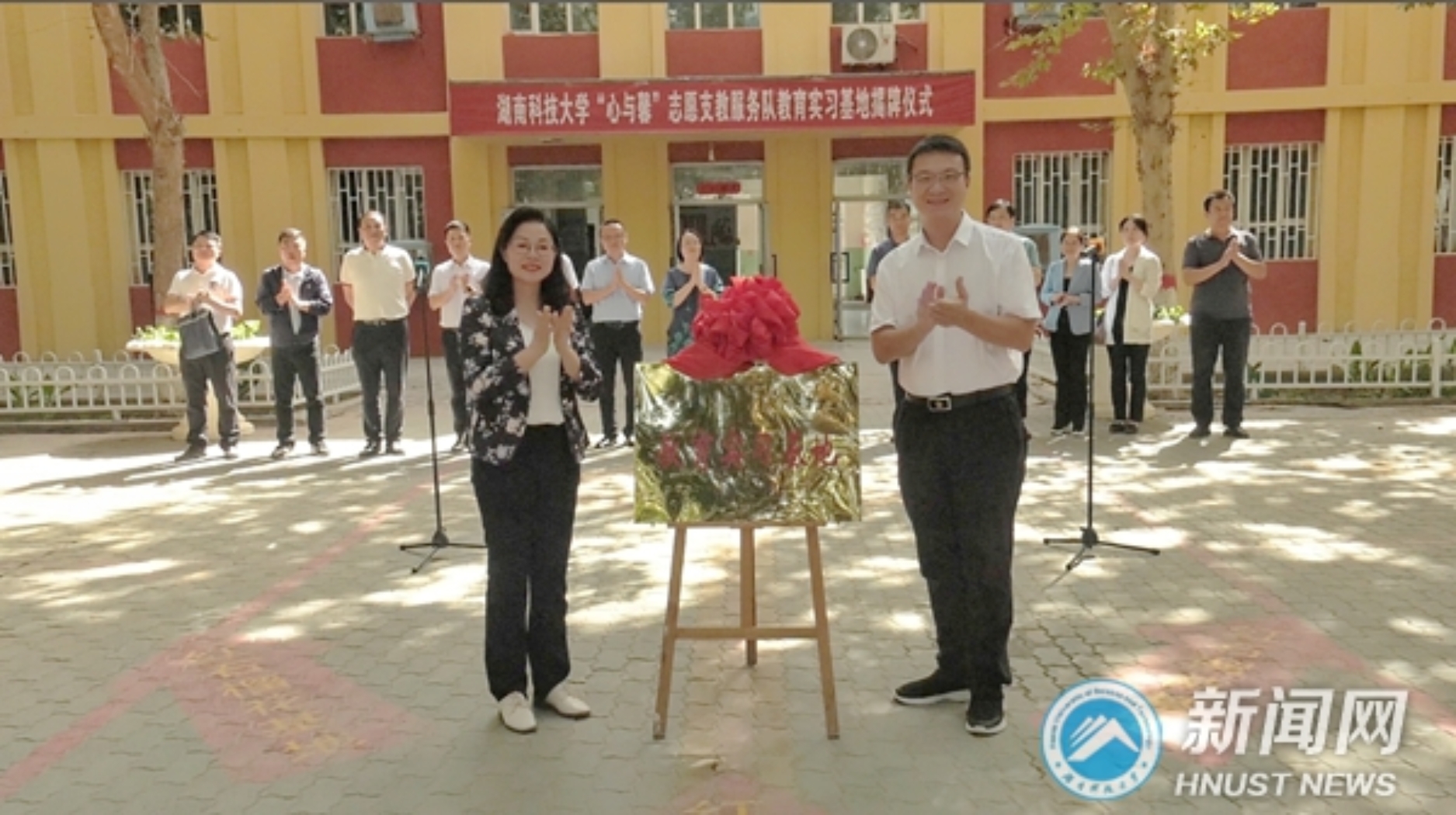 ▲ 谢慧为“心与馨”志愿支教服务队教育实习基地揭牌